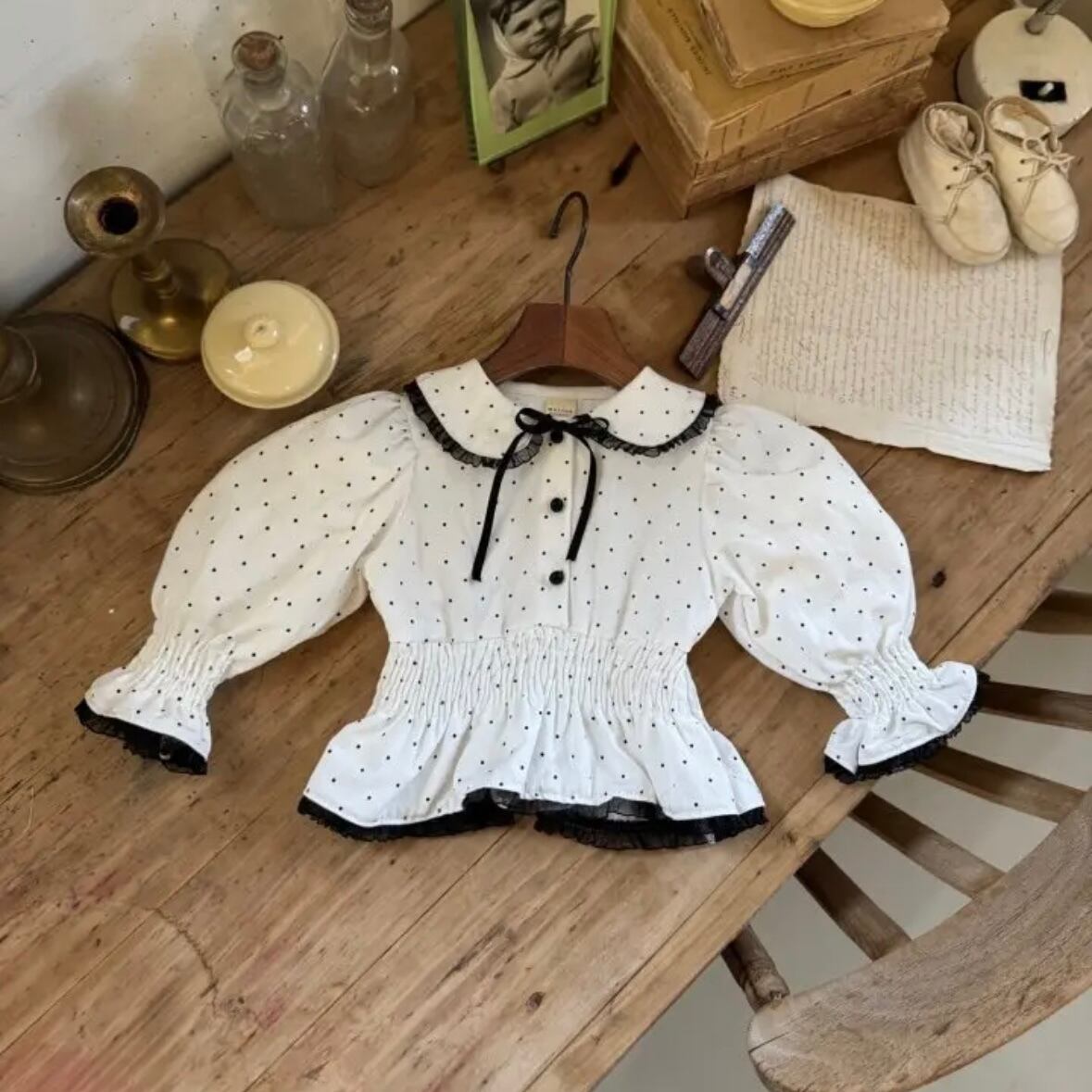 [予約]marron ドットブラウス
